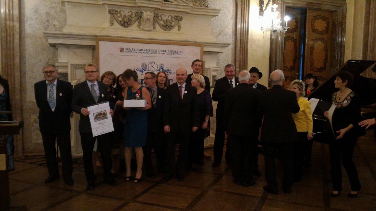 V hlavním sále Senátu ČR udělili organizátoři v pátek 11.11.2016 hlavní cenu nádraží v Mimoni, které obdrželo i cenu generálního ředitele Správy železniční dopravní cesty Pavla Surého.
