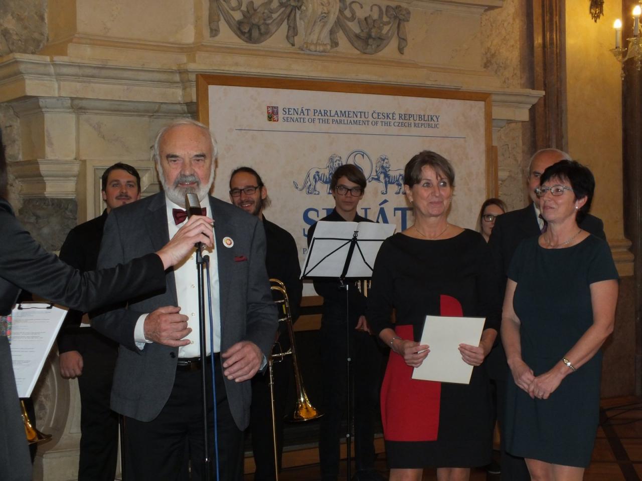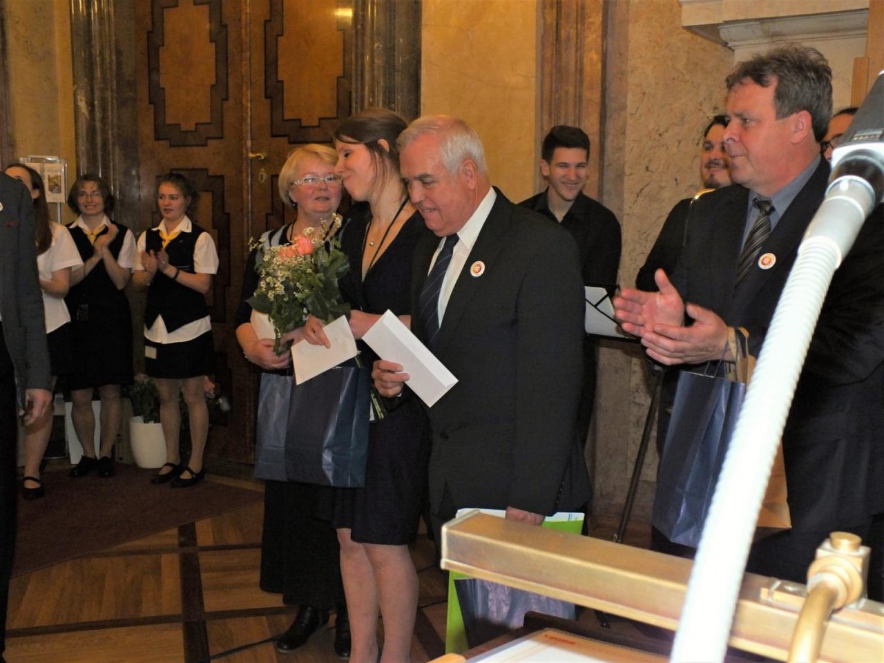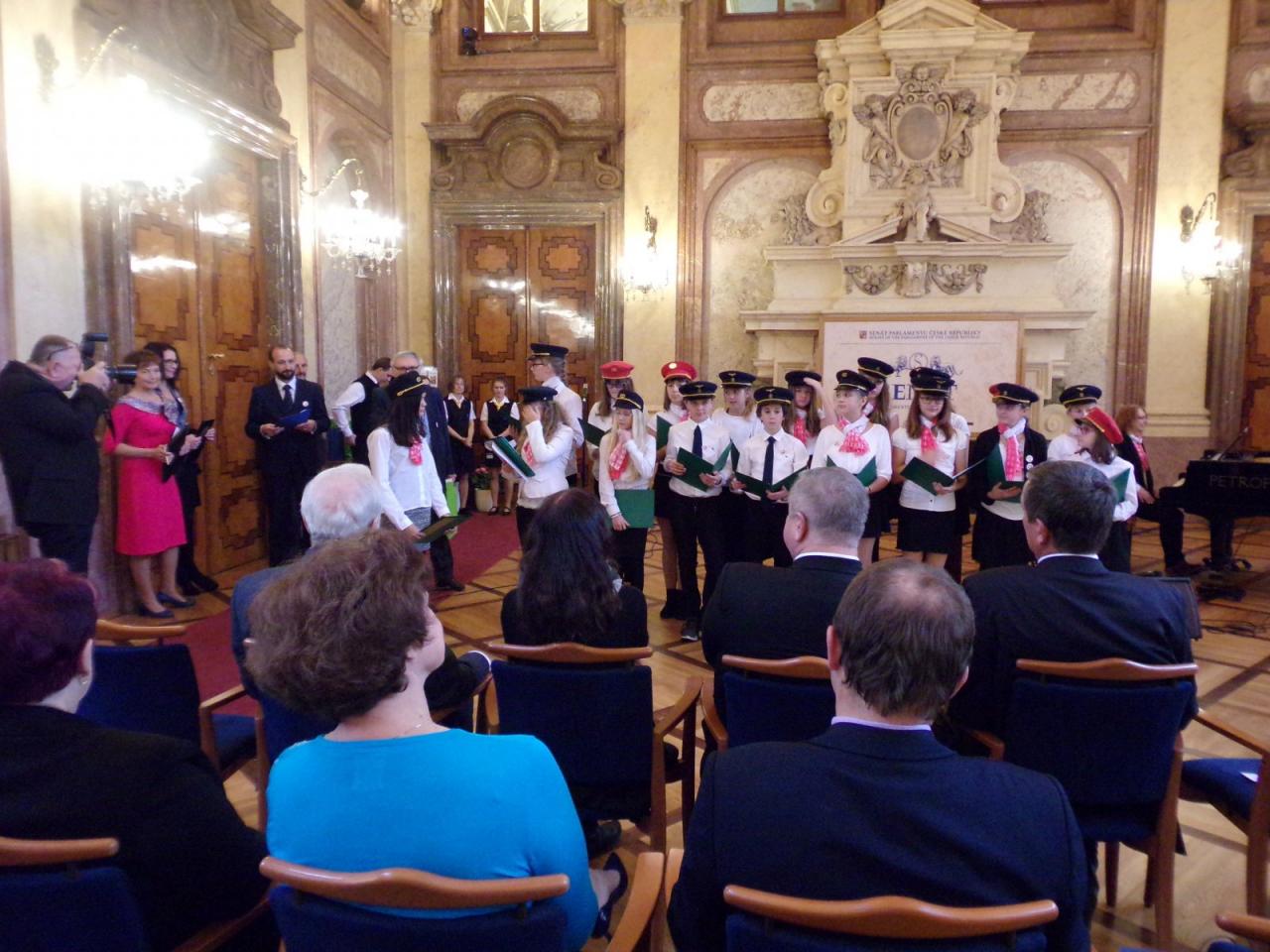 Mimoňští studenti tak měli možnost setkat se osobně s panem Svěrákem a prohlédnout si reprezentativní prostory Valdštejnského paláce. Nakonec si pochutnali na výborném dortu ve tvaru Dokeského nádraží i s historickou parní lokomotivou.