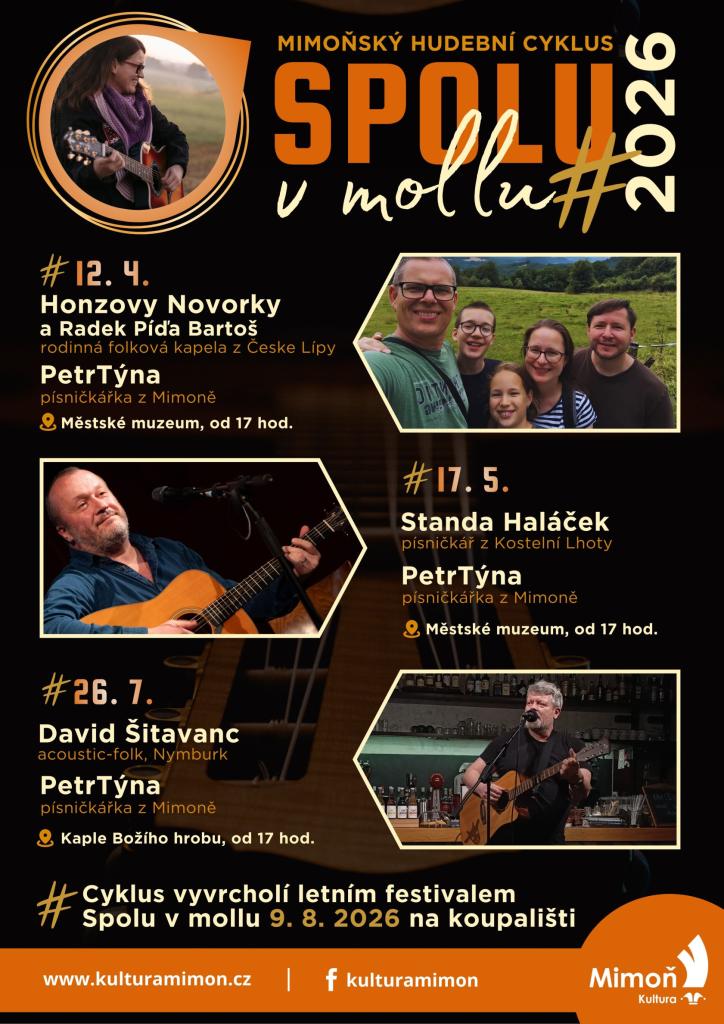 Přehled hudebního cyklu Spolu v mollu v Mimoni, kde se potkává folk, písničkářství a příjemná atmosféra komorních koncertů. Čekají na vás večery plné emocí, akustických tónů a osobních příběhů.