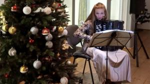 Vánoční atmosféru navodila v Městském muzeu Mimoň Jitka Baštová hrou na "Andělský akordeon".