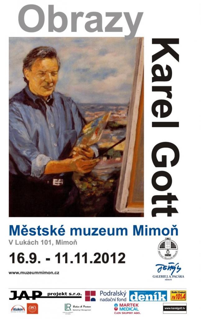 Karel Gott dostal do vínku hned několik talentů. Jeho hudební nadání stojí dozajista na prvním místě, ale ani jeho malířské umění se nedá přehlédnout. I na tomto poli je to výrazný otisk umělce, který dokáže vtisknout do obrazu své emoce a umí je předat dál. V Mimoni byla otevřena výstava obrazů Karla Gotta vernisáží, kterou zahájil pan Zdeněk Kohák společně s panem starostou Františkem Kaiserem. Ozdobou slavnostního odpoledne byla Monika Žídková a o hudební složku se postaral Patrik Czuczor. Výstavu si můžete prohlédnout od 16.9. do 11.11.2012.