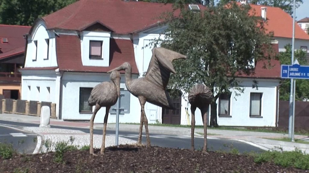 Začátkem dubna bylo z ateliéru Panenských Břežan přivezeno do Mimoně sousoší čápů, které je dominantou okružní křižovatky na Kozinově náměstí. Instalace proběhla ve dvou fázích. V té první byli čápi ukotveni do země, v té druhé – dokončovací, bylo připevněno křídlo a sousoší bylo natřeno barvou. Ilustrační záběry zachycují postup prací a také finální podobu kruhového objezdu. Sousoší čápů vzniklo v sochařské dílně Jana Švadlenky ve spolupráci se sochařem Jiřím Genzerem.
