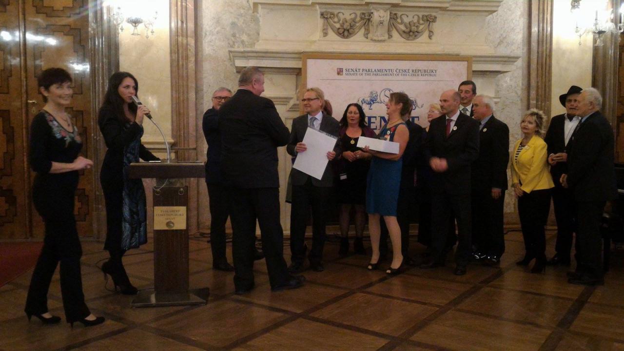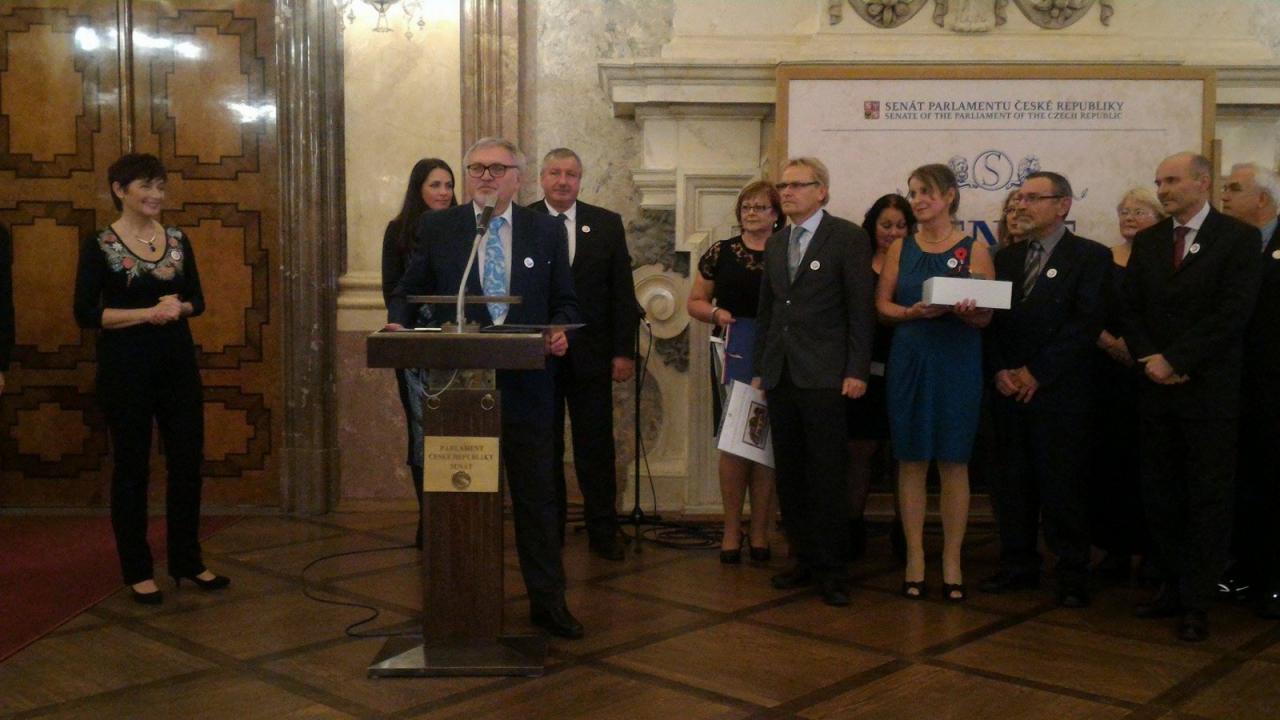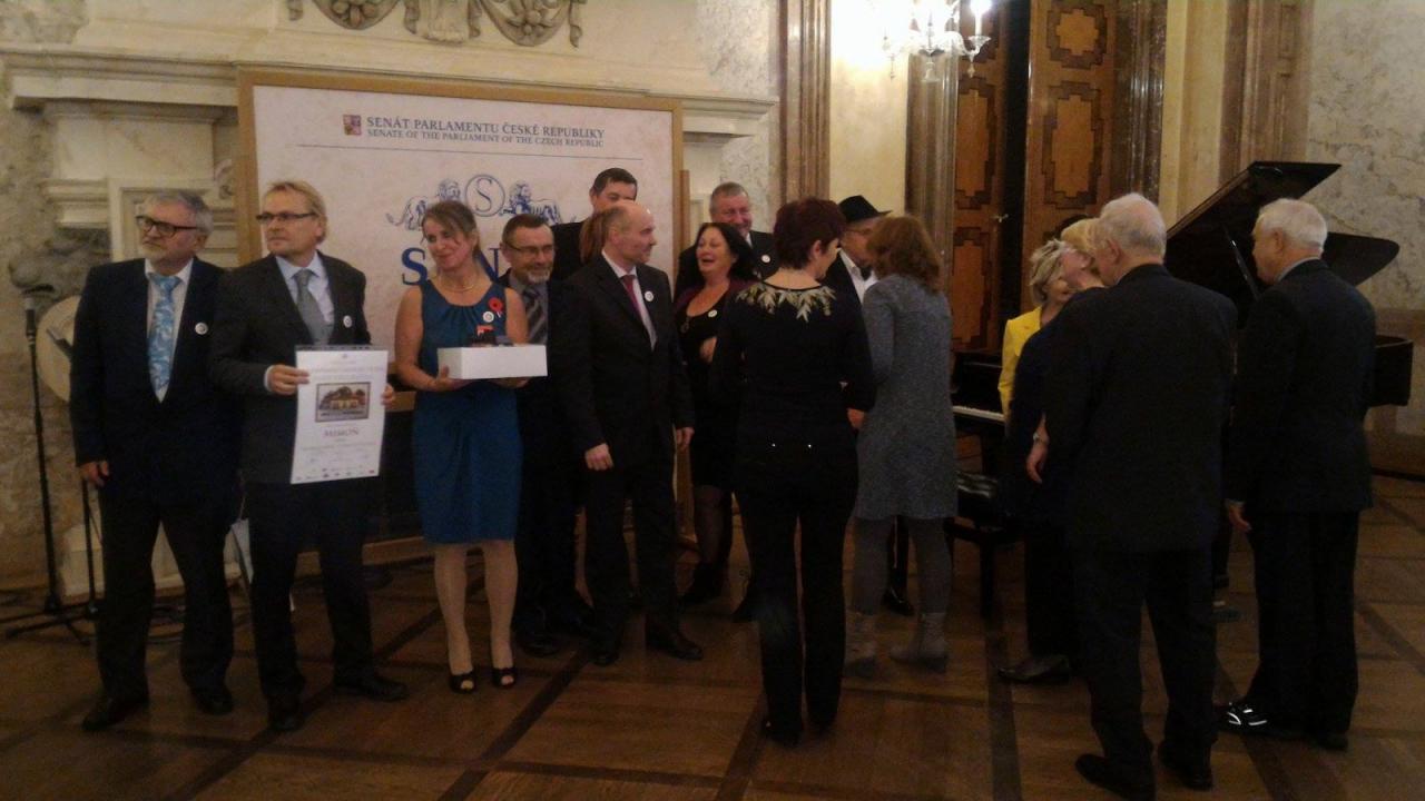 V hlavním sále Senátu ČR udělili organizátoři v pátek 11.11.2016 hlavní cenu nádraží v Mimoni, které obdrželo i cenu generálního ředitele Správy železniční dopravní cesty Pavla Surého.