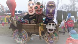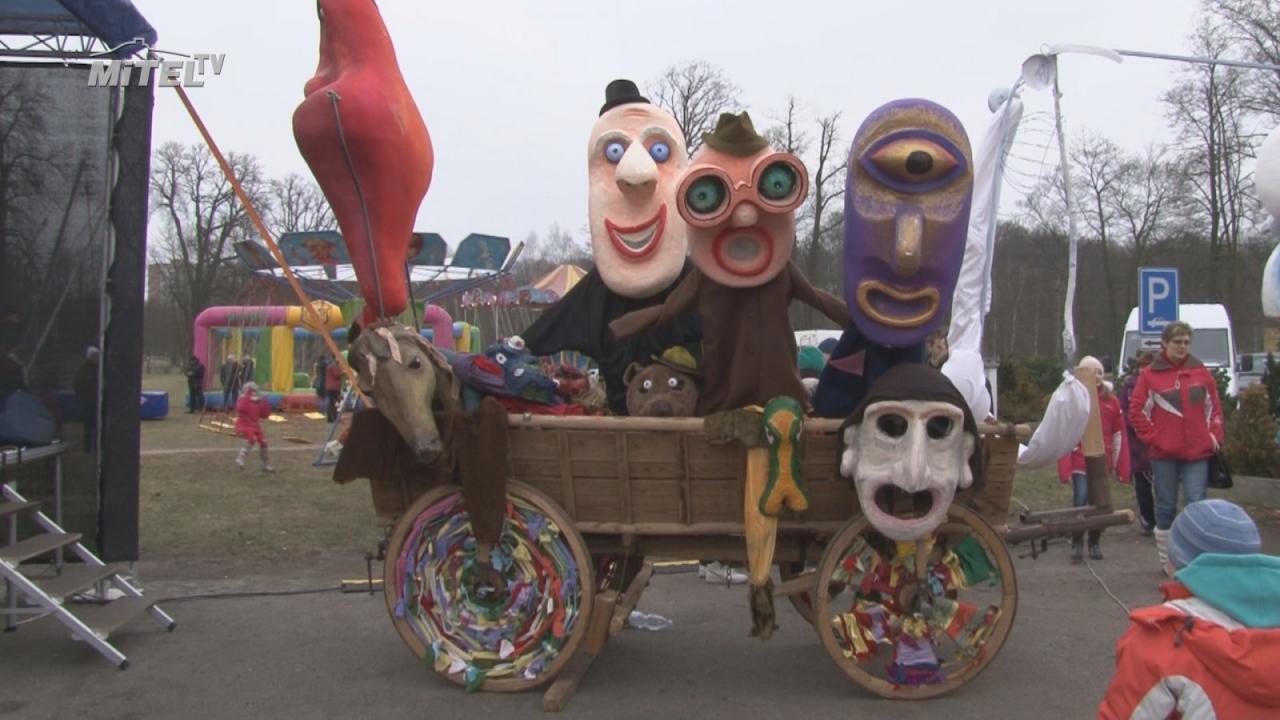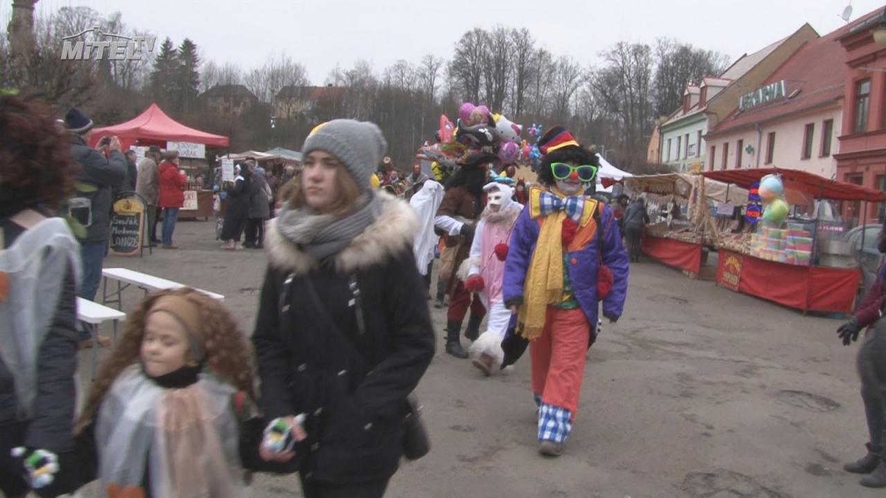 Po poledni celý program vyvrcholil průvodem masek. Na voze s koňmi hrála muzika a těsně za ním vedly celý průvod tradiční obří masky. A komu se domů ještě nechtělo, šel se podívat na divadelní představení, nebo se ohřát na film do kina.