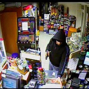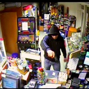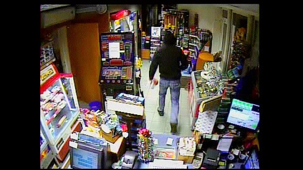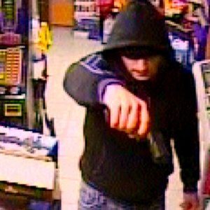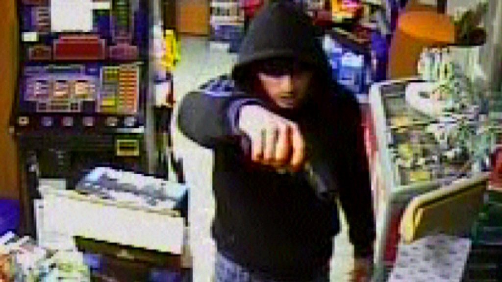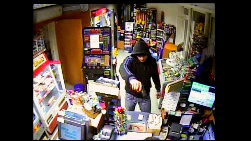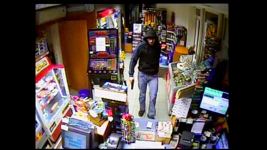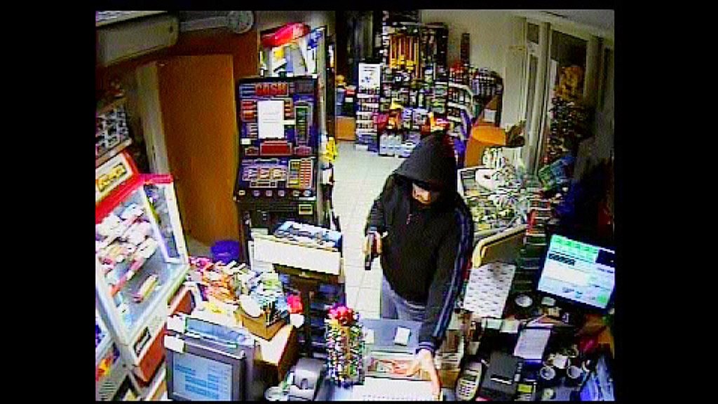 Muž ve věku odhadem 20 až 30 let, sportovní atletické postavy, vysoký asi 180 cm s knírem, který měl na sobě světlé džíny a sportovní tmavou mikinu s kapucí a světlými pruhy na rukávech, vešel do prodejny k pultu obsluhy a namířil pistoli. Obsluha muži vyhověla a vydala hotovost.