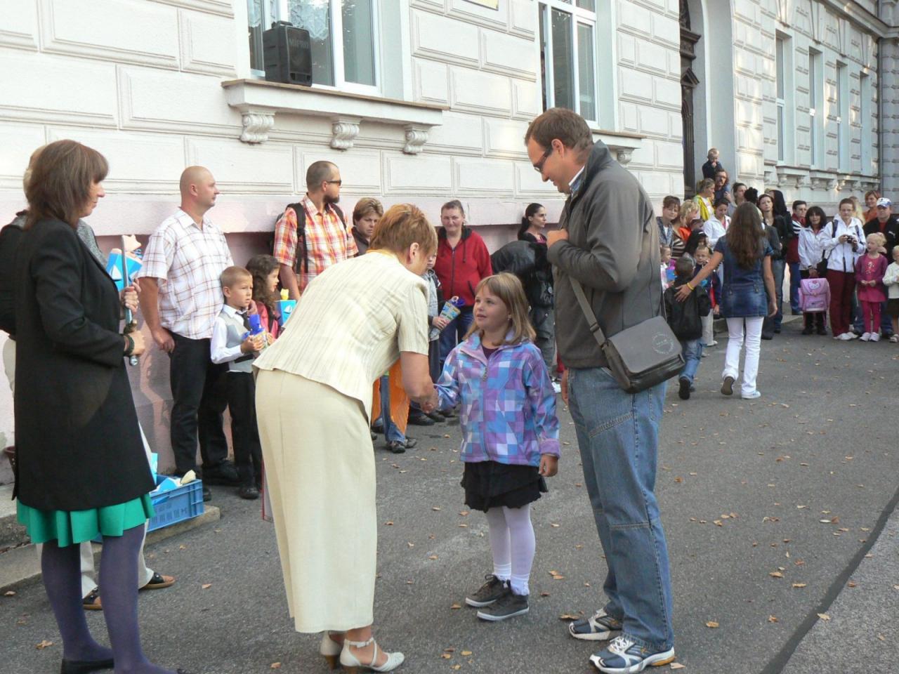 Školní rok 2012 - 2013 již odstartoval. První školní den byl významný zejména pro prvňáčky. Do školních lavic jich v Mimoni usedne celkem 71. První třída se v letošním školním roce neotevírá pouze na Základní škole praktické. Na základní škole Mírová již druhým rokem pasují prvňáky na školáky. Slavnostního zahájení školního roku se pravidelně účastní pedagogové, žáci ze všech ročníků školy, členky sboru pro občanské záležitosti a v neposlední řadě i rodiče žáků. Ředitelka školy paní Mgr. Majlišová všem zúčastněným popřála mnoho školních úspěchů a prvňákům předala kornouty s překvapením.