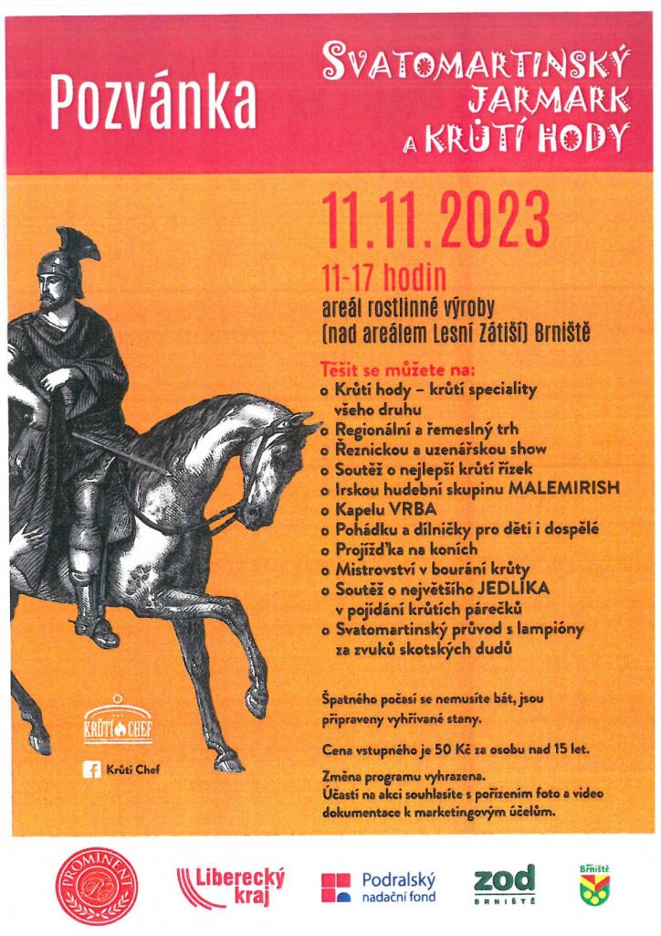 Brány jarmarku se otevřely v 11:00 v areálu rostlinné výroby nad areálem Zátiší v Brništi a návštěvníci si mohli vybrat z pestré nabídky výrobků k jídlu i potěše. Pro malé i velké labužníky bylo připraveno několik stánků s krůtími specialitami , pro vinaře bohatá ochutnávka vín. Děti si přišly na své při loutkovém představení Divadla DOKOLA a dospělí při řeznické a uzenářské show.