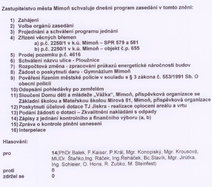 USNESENÍ z 9. zasedání Zastupitelstva města Mimoň, které se konalo dne 17. října 2013 od 16:30 hodin v KD Ralsko Mimoň.