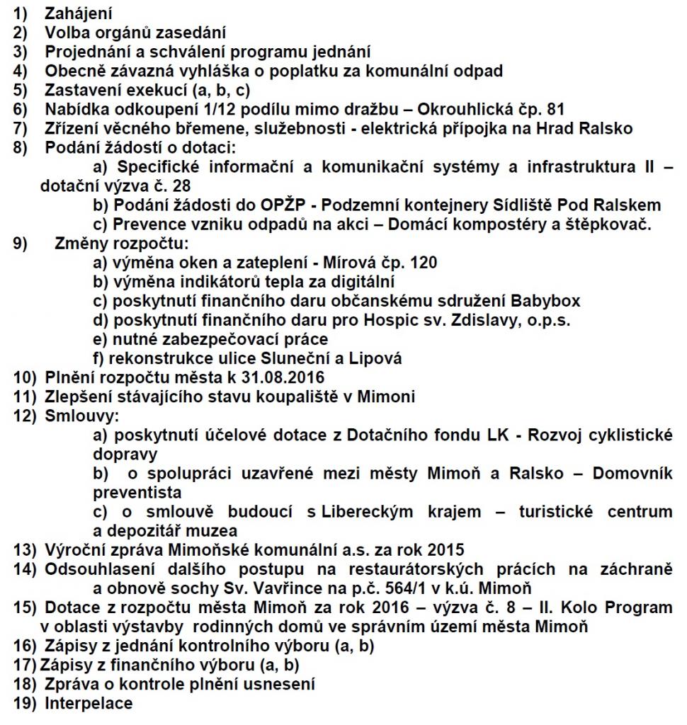 Záznam z 10 zasedání Zastupitelstva města Mimoň, které se konalo dne 20. října 2016. USNESENÍ ke stažení ZDE.