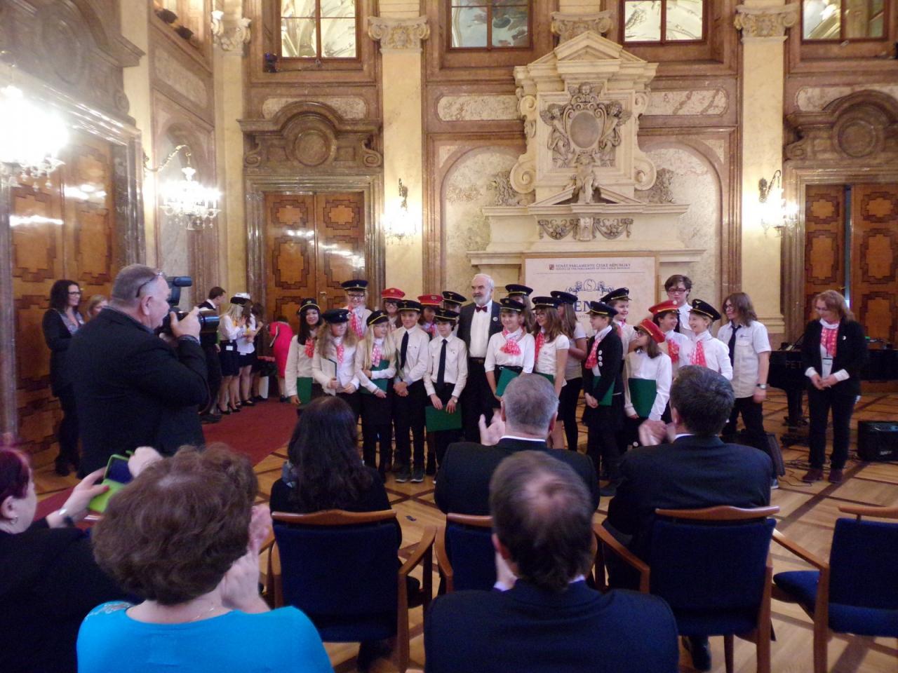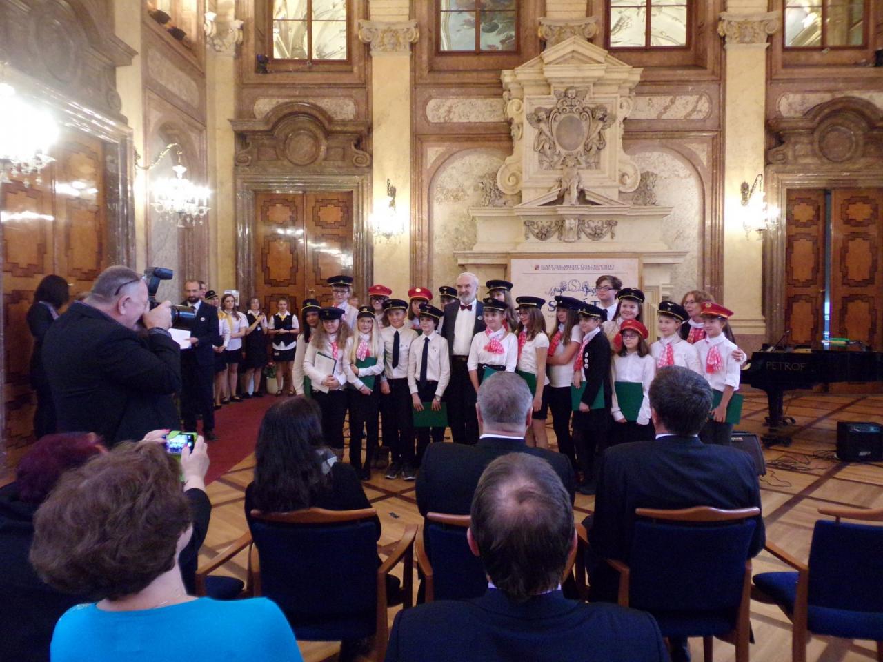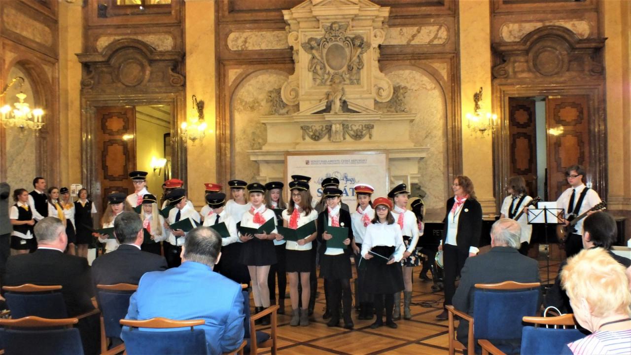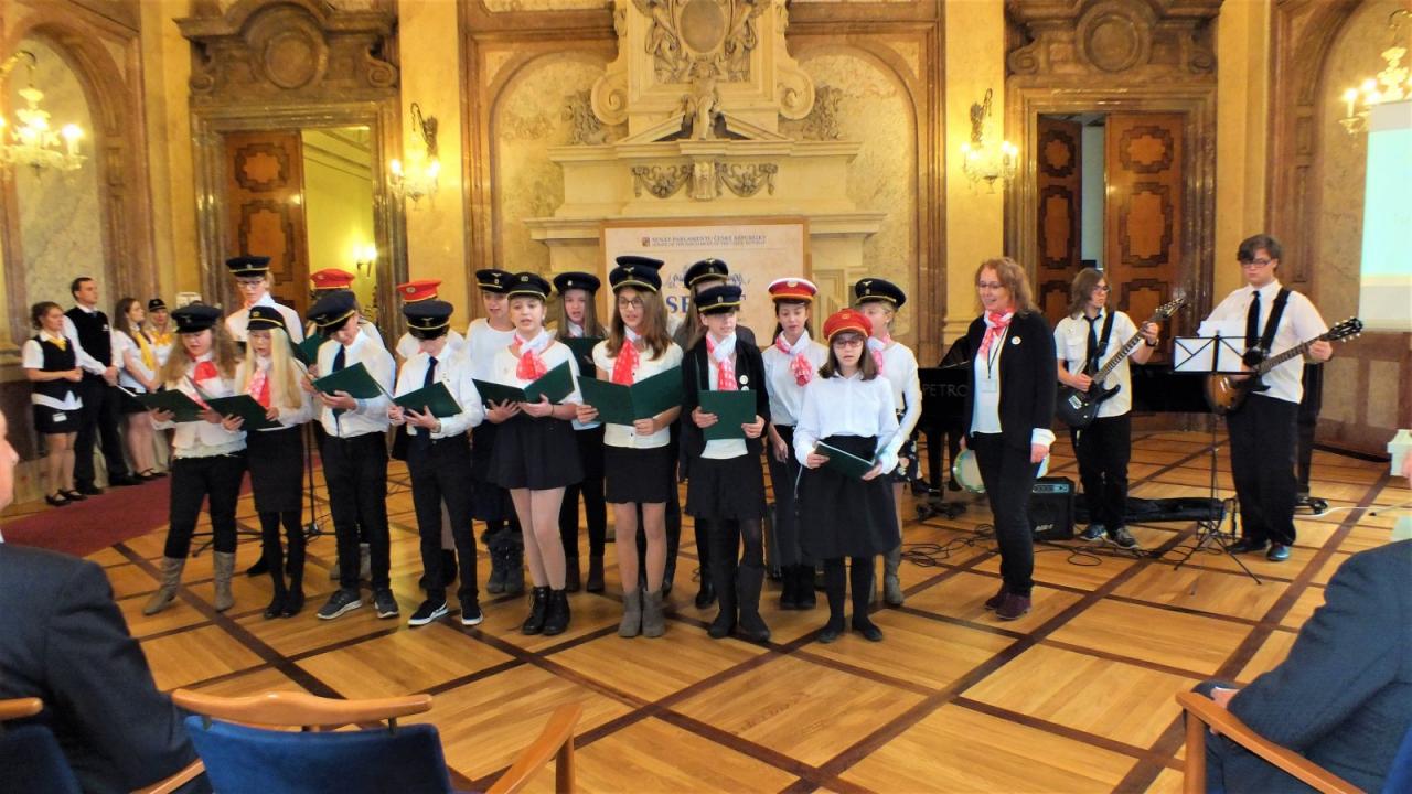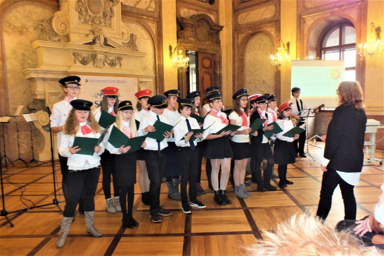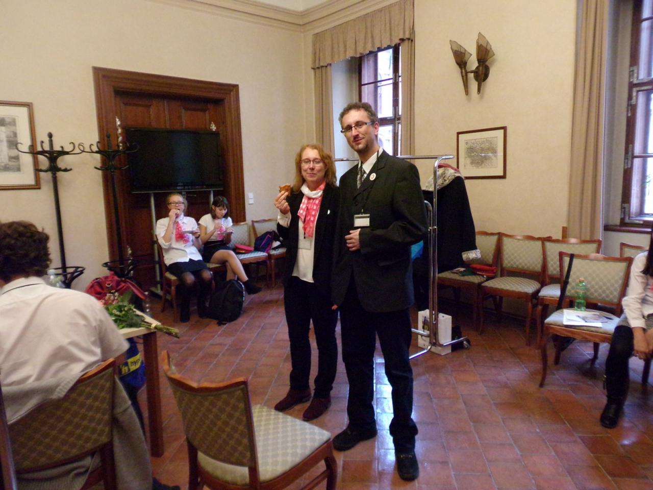 Mimoňští studenti tak měli možnost setkat se osobně s panem Svěrákem a prohlédnout si reprezentativní prostory Valdštejnského paláce. Nakonec si pochutnali na výborném dortu ve tvaru Dokeského nádraží i s historickou parní lokomotivou.