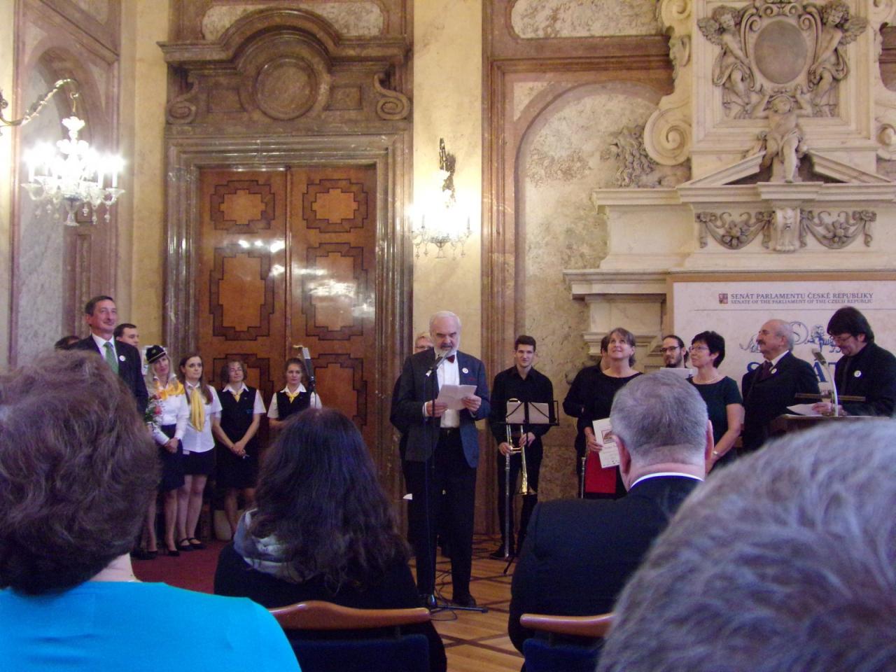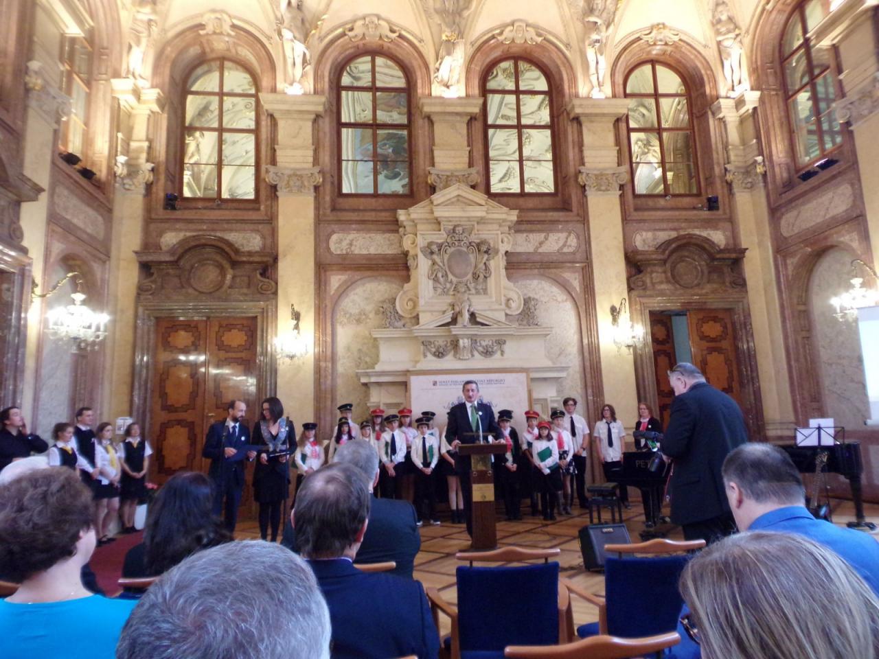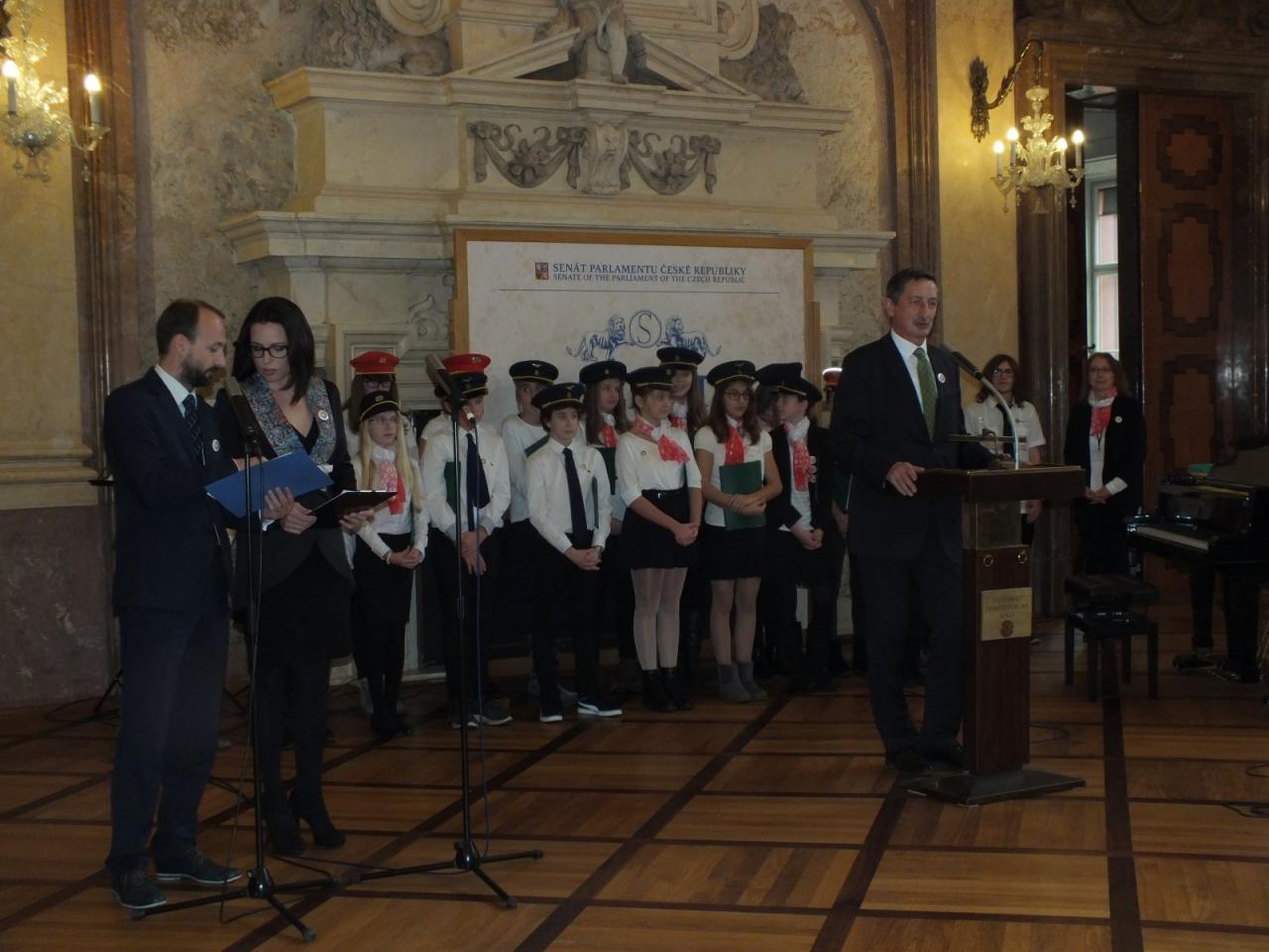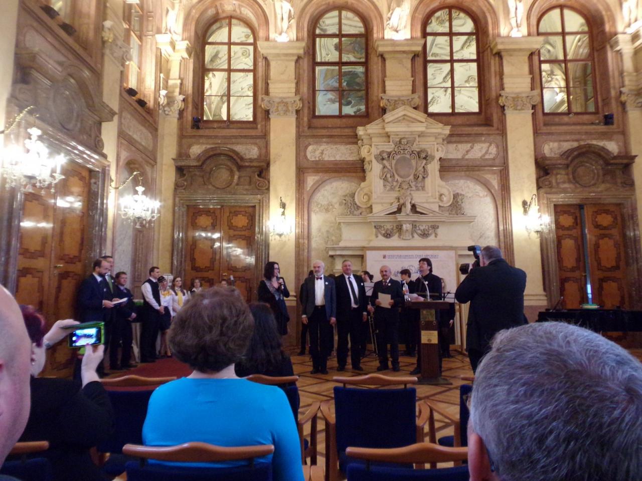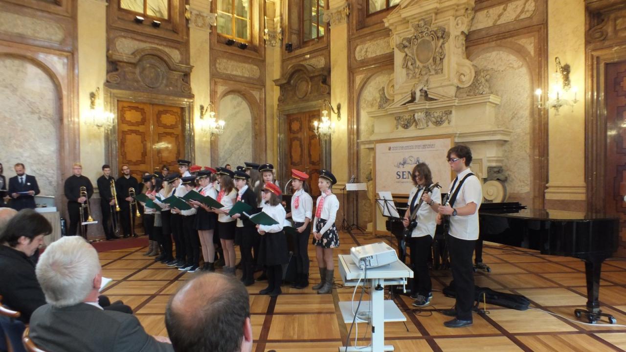 Mimoňští studenti tak měli možnost setkat se osobně s panem Svěrákem a prohlédnout si reprezentativní prostory Valdštejnského paláce. Nakonec si pochutnali na výborném dortu ve tvaru Dokeského nádraží i s historickou parní lokomotivou.
