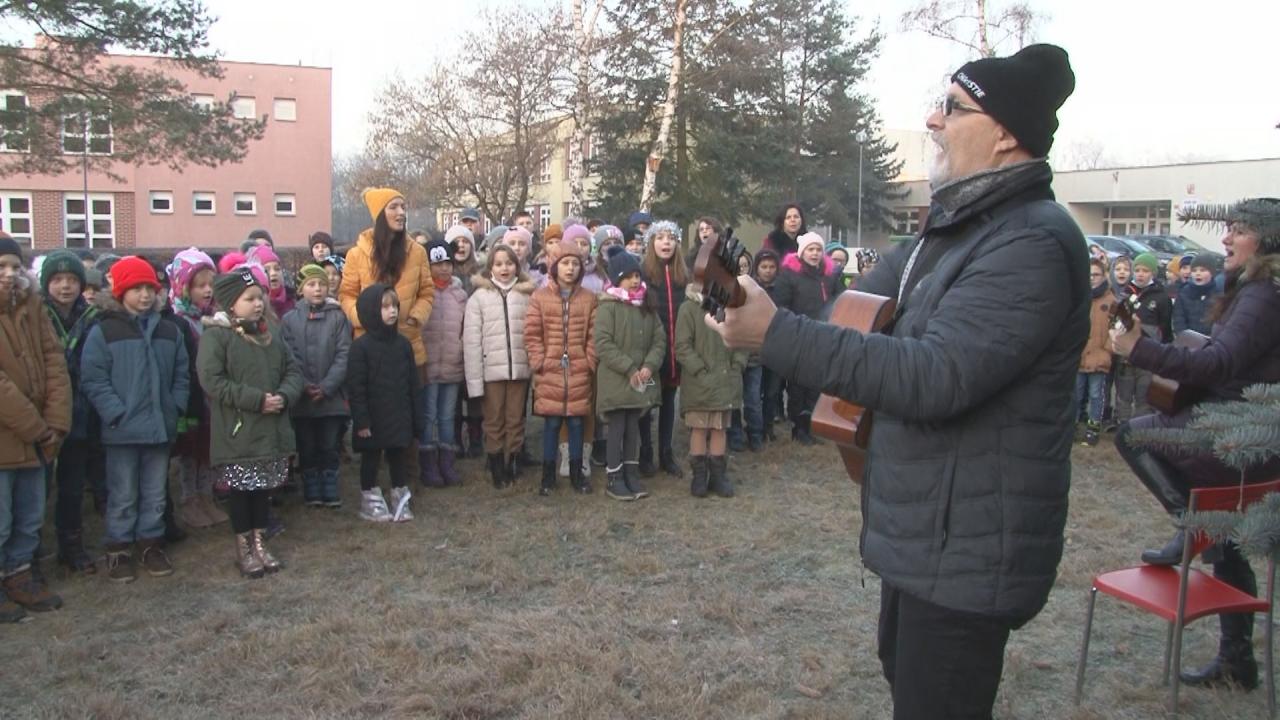 Škola skončila a začali vánoční prázdniny. Než ale začaly, zazpívaly si děti ze Základní školy Pod Ralskem naposledy v letošním roce před školním stromem.