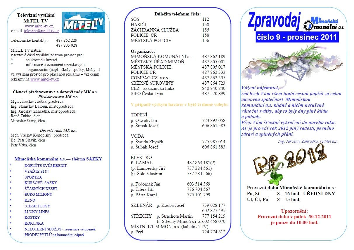 rád bych Vám všem touto cestou popřál za celou akciovou společnost Mimoňskou