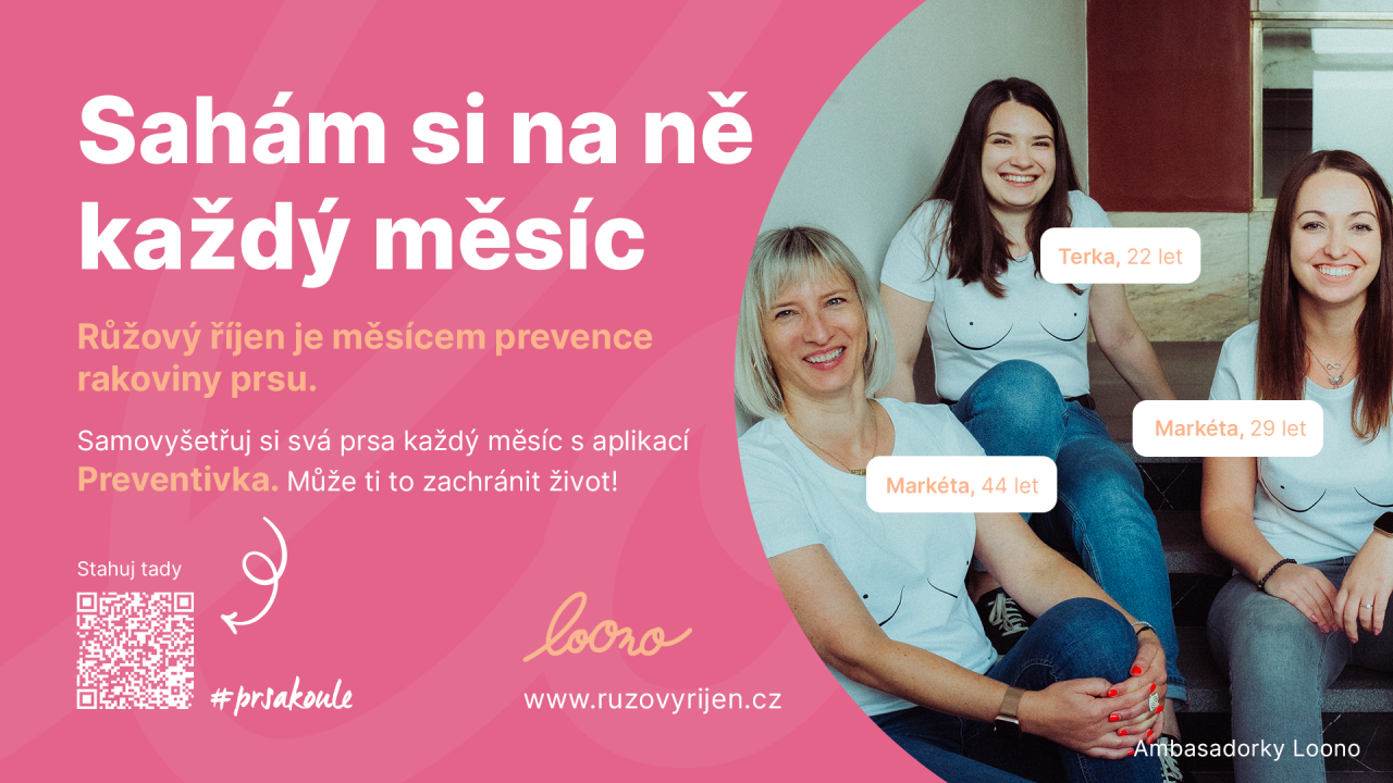 „Přestože není Růžový říjen žádnou novinkou, je nutné na důležitost prevence rakoviny prsu upozorňovat stále více. Po kožních nádorech se jedná o nejčastější rakovinu u žen v Česku. Ročně jí onemocní 7 000 z nich, nejčastěji po 40. roce věku. Na mamografické kontroly přitom chodí pouze 60 % těch, kterých se týkají,” vysvětluje Kateřina Šédová, lékařka a zakladatelka neziskové organizace Loono.“ Mamograf by měl probíhat 1x za 2 roky u žen po 45. roce věku. Mladším ženám doporučujeme zajít na ultrazvuk, a to 1x za 2-3 roky,” uzavírá.
