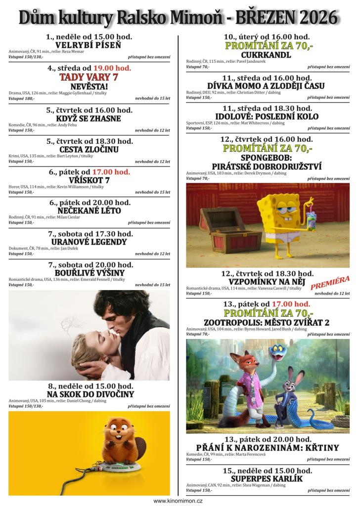 KINO MIMOŇ - březen 2026